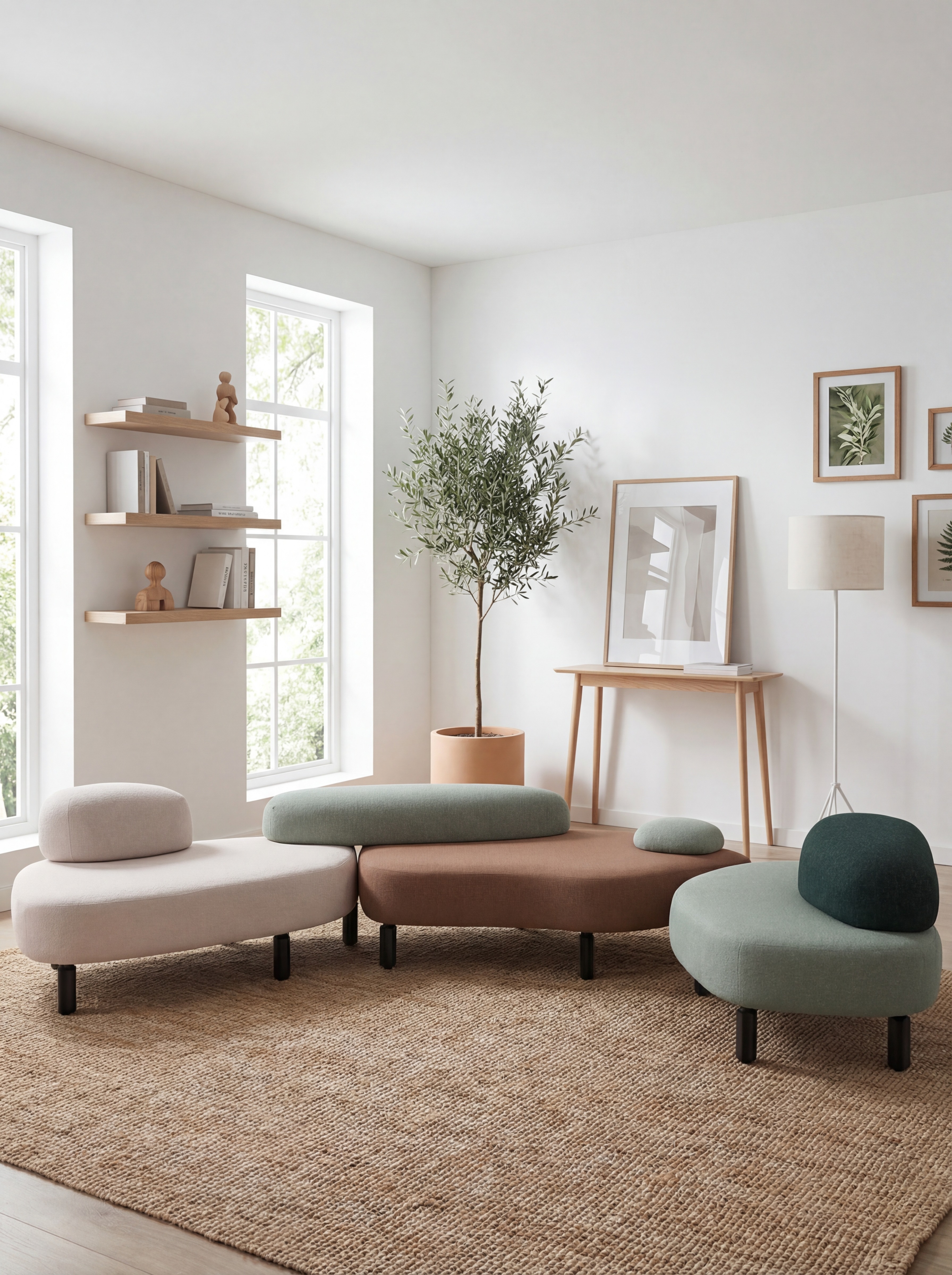 圓潤幾何美感,營造自然漂浮的居家放鬆角落。
