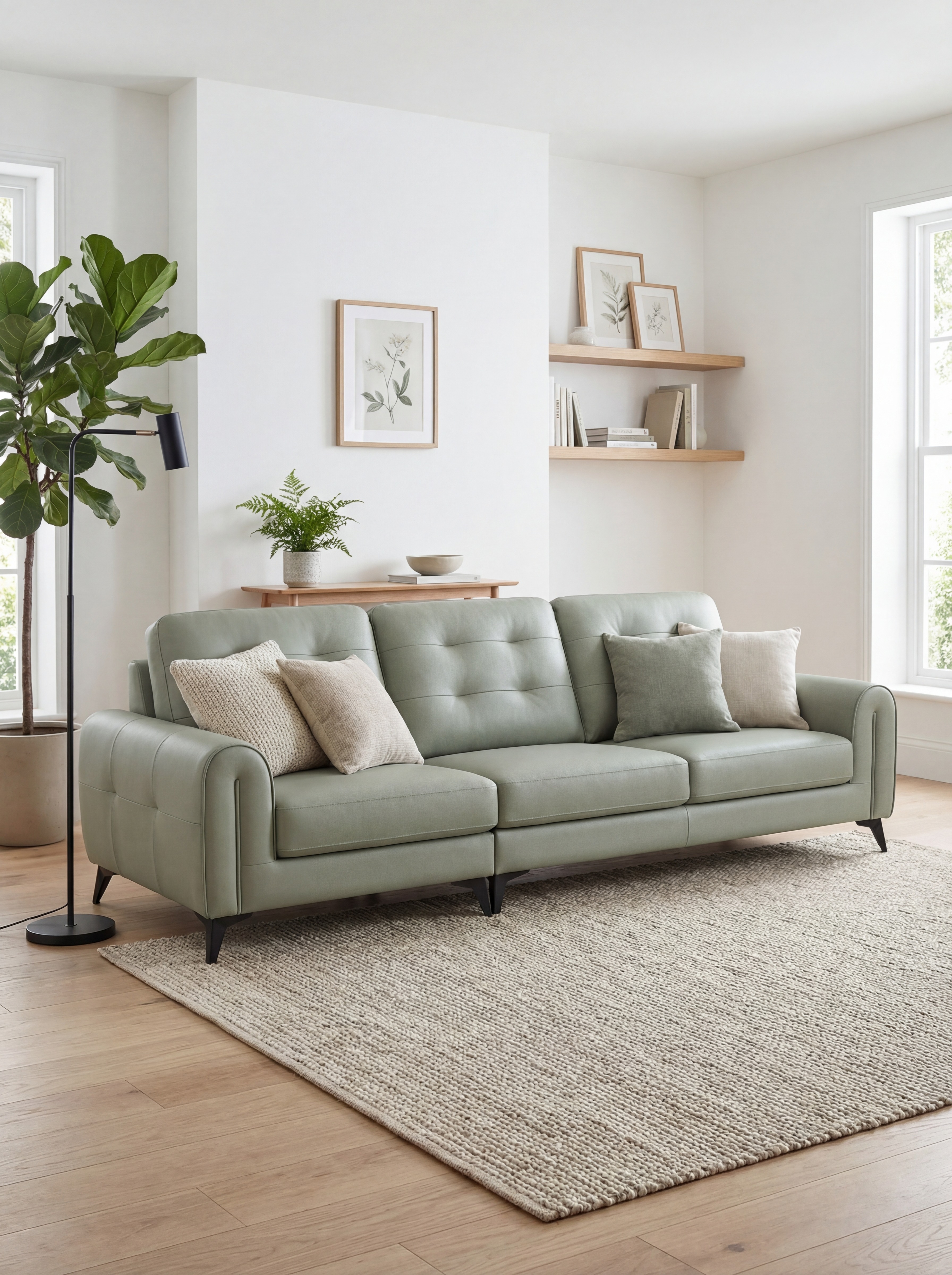 經典拉鈕搭配流線扶手,為客廳注入沈穩的優雅。